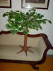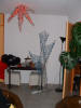Tree heb ik gemaakt voor het huwelijk van een collega. Het bestaat uit 7 staven betonijzer dat nog net te buigen is met mankracht. De huls is van gaas met gipsverband. Er zit een compleet groen snoer in verwerkt en meerdere kunsttakken.